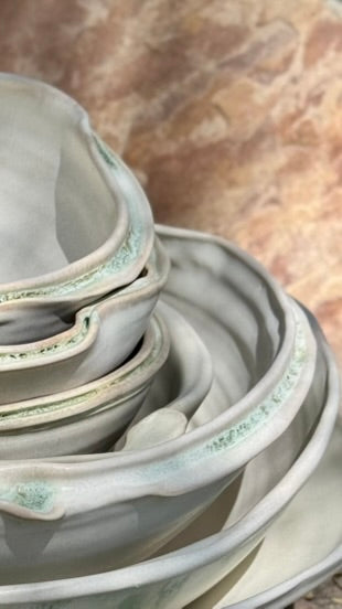 We make our products by hand, one at a time, on the pottery wheel. This means each piece is slightly unique in terms of size, shape, and color variations. All of our functional ceramics are non-toxic and dishwasher/microwave safe.